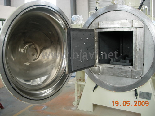 通过吸取国 外此种炉子的优点,现在我们的用户均使用一台炉子完成这两个工艺,降低了成本,提高了质量。适合大批量烧制零件,脱脂效果好,烧结温度均匀,产品质量得到有效提高。 合理的炉胆设计,脱脂效果好,温度均匀,保温良好,有效节约用电。内部硬屏+碳毡使炉内更整洁,更耐气流冲刷,提高使用寿命。 内置快冷系统+优质紫铜翅片管,换热效率高,更节省空间。 前后开门的结构,装出料更方便,风屏封闭效果好。 可配扩散泵达到高真空,可制作钼炉胆,性能更优越,烧结更清洁。
